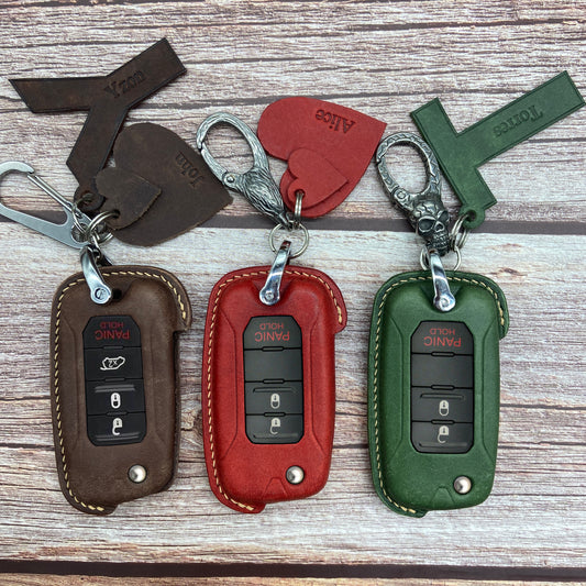 Leather Key Case for 2020-2025 Compass, Cherokee, Wrangler, Grand Cherokee, Wagoneer - Custom Fob Gift