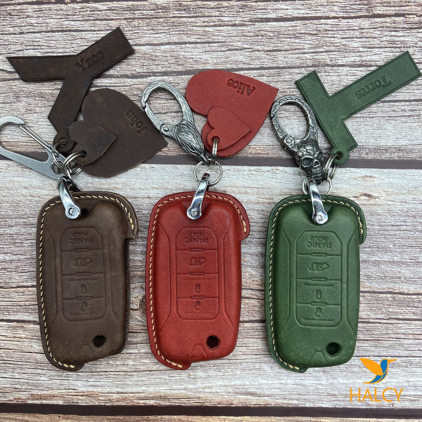 Leather Key Case for 2020-2025 Compass, Cherokee, Wrangler, Grand Cherokee, Wagoneer - Custom Fob Gift