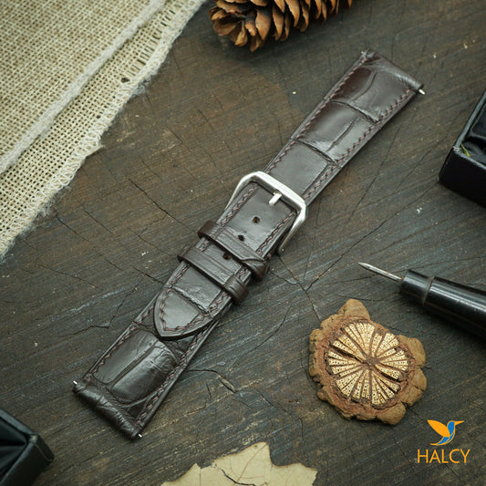 Alligator Leather Watch strap with quick-release spring bars. Choice of Width - 16mm, 18mm, 20mm, 22mm, 24mm, Etc..