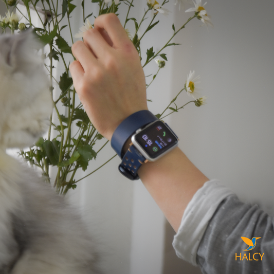 Blue Leather Wrap Bracelet for apple watch band, Choice of adapters and buckle color