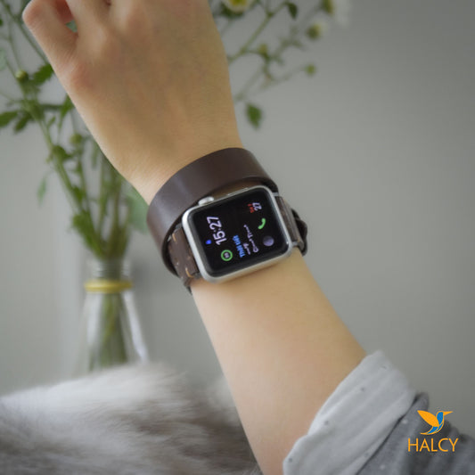 Brown Leather Wrap Bracelet for apple watch band, Choice of adapters and buckle color