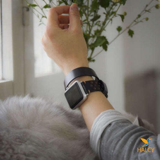Black Leather Wrap Bracelet for apple watch band, Choice of adapters and buckle color