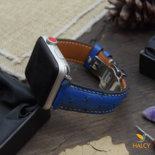 Custom Handmade Ostrich Leather Watch Band Fit for Apple watch Series 8, 7, 6, 5, 4, 3 : Choice of adapters and Steel Butterfly Clasp color