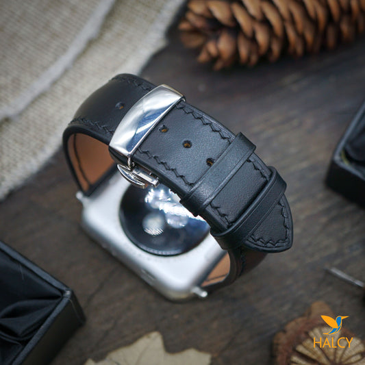 Leather Watch Band Fit for Apple watch Series 8, 7, 6, 5, 4, 3 : Choice of adapters and Steel Butterfly Clasp color