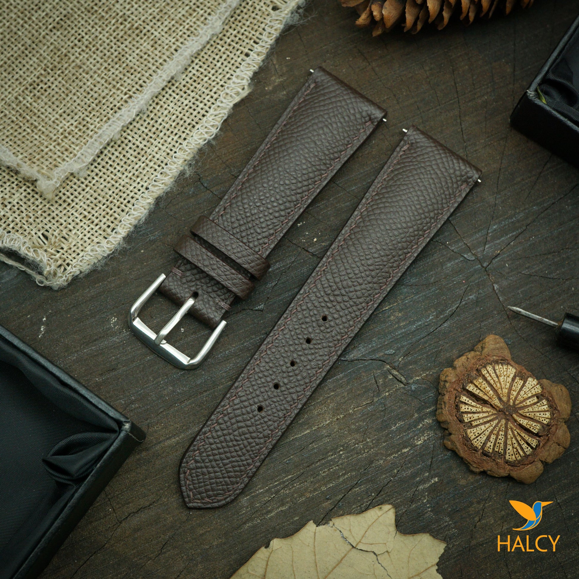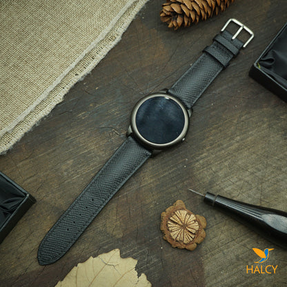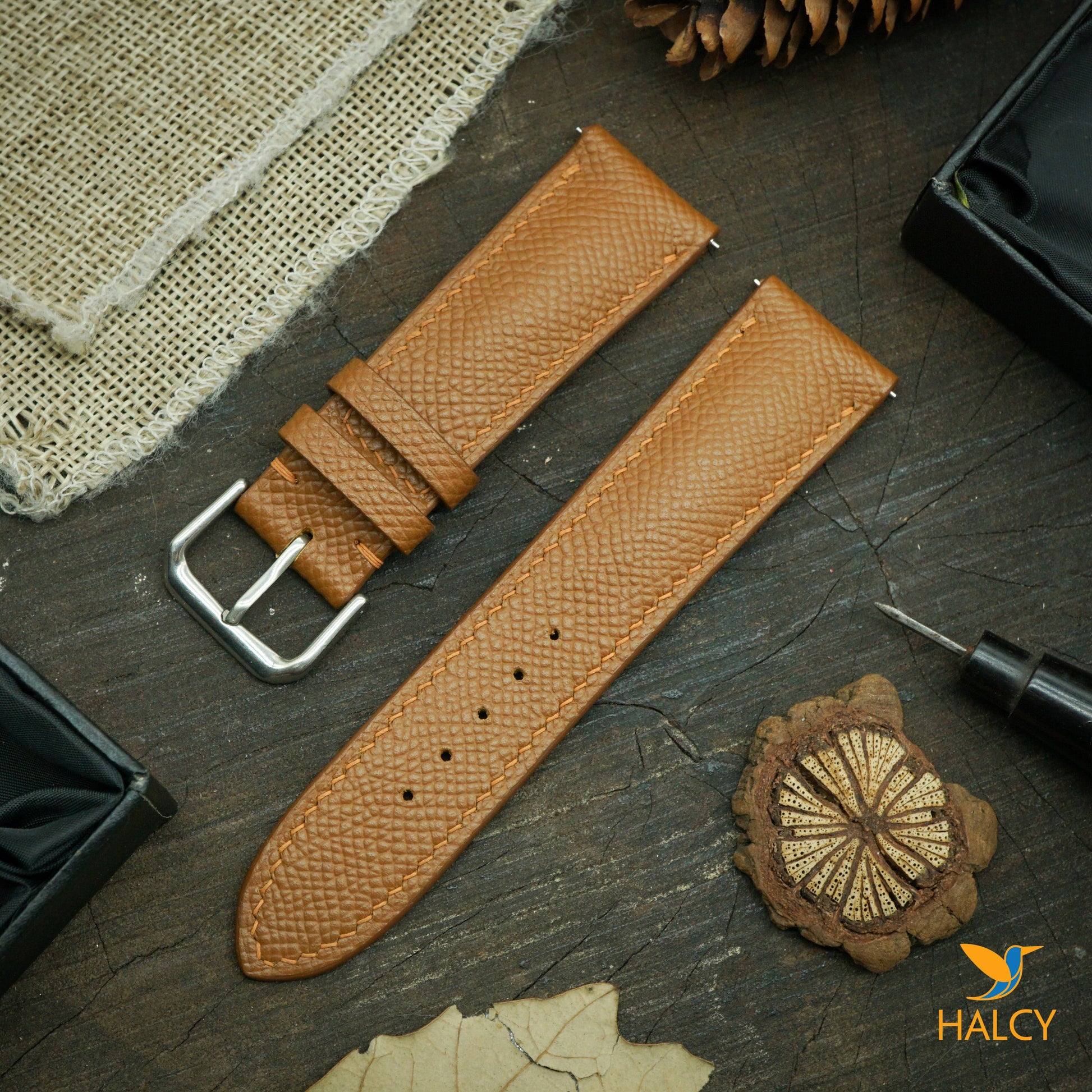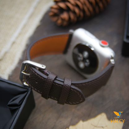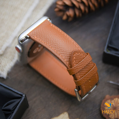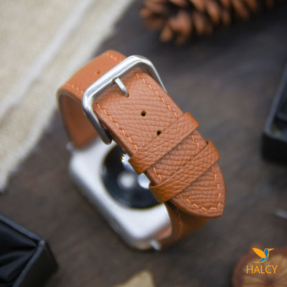 - Watch band is hand made of Epsom leather, from the famous Haas Tannery. This leather is a calf leather and used extensively in many Hermes products as they co own the tannery and produce some other be best leathers in the world. Epsom leather is an embossed leather so the pattern pressed into the leather isn’t the actual grain that has some benefits: holding its true shape in all circumstances and being completely resistant to scratching, lightweight and cleaned with a simple wipe using a damp cloth.