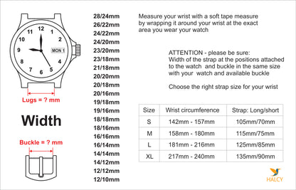 - Standard size: 6.3" - 7,5"" wrist (160 - 191mm) = 115mm/75mm