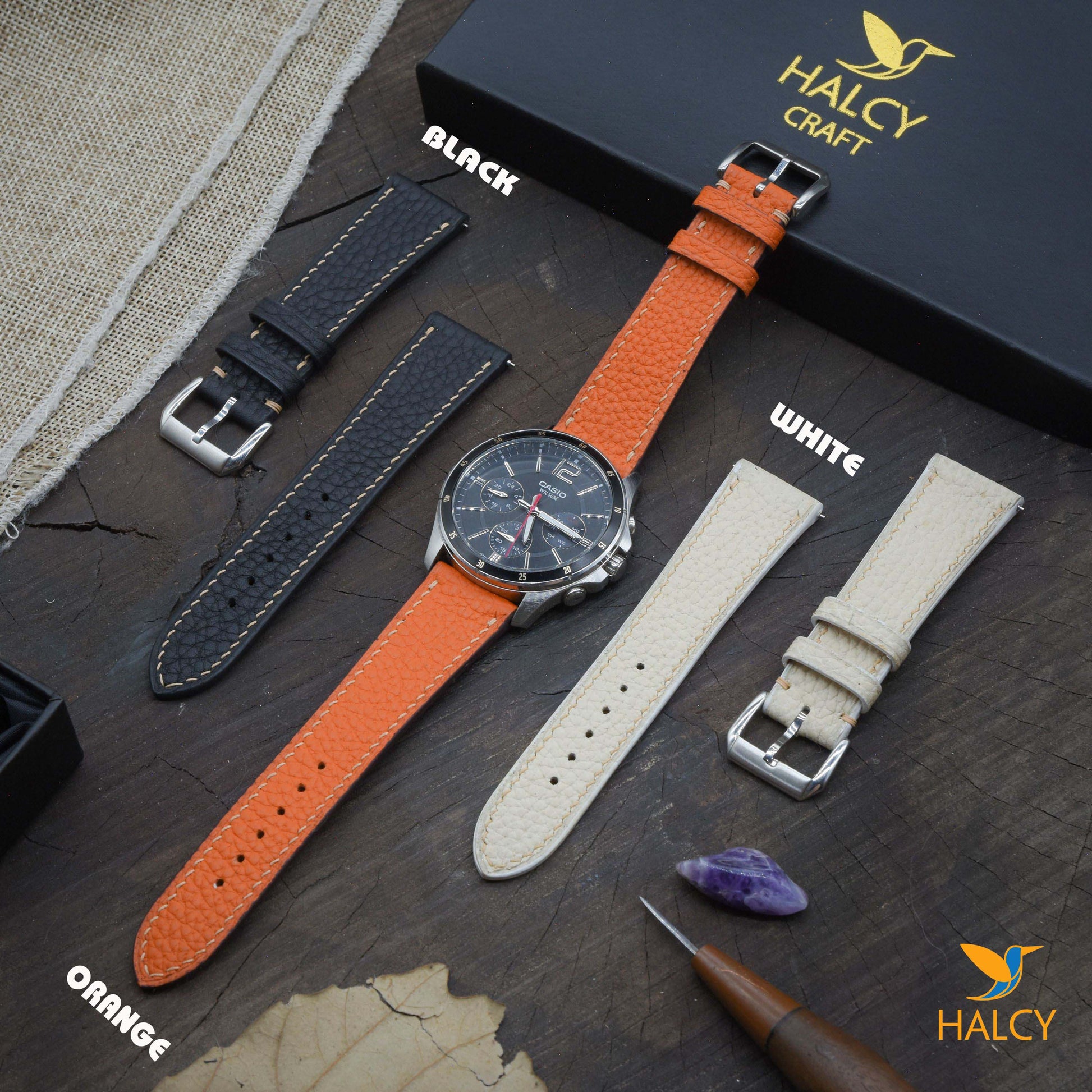 Handcrafted German Togo calf leather strap - a wide range of sizes - Quick release clasp - Buckle color selection